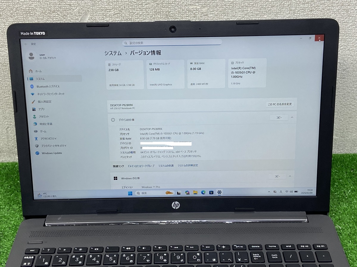 ノートパソコン中古 i5第10世代 ノートPC hp i5 10 gen laptop HP 250 G7 NOTEBOOK PC i5-1035G1 メモリ8GB NVMe 256GB 15.6 フルHD PC LAPTOP