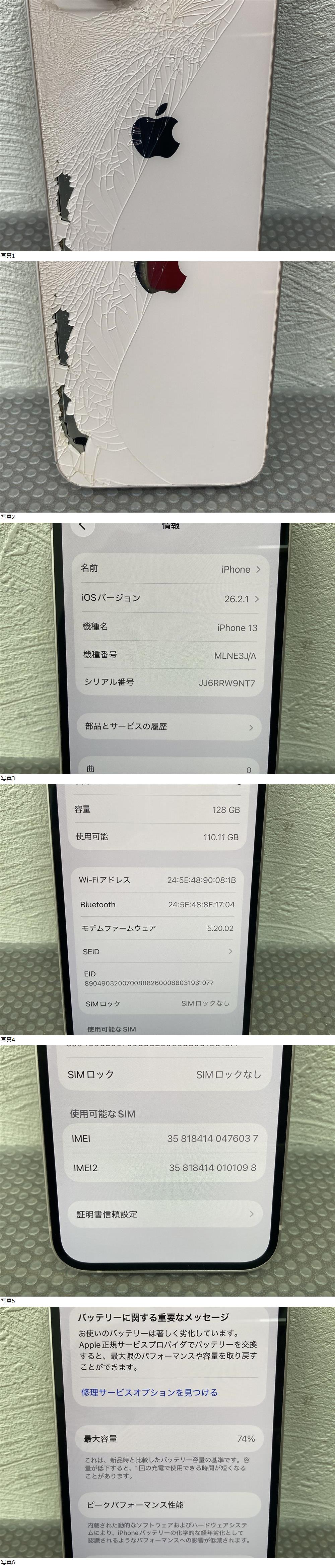 ★21648-b Apple iPhone13 128GB MLNE3J/A ピンク SIMロック解除 背面割れ 最大容量74%★ 收藏