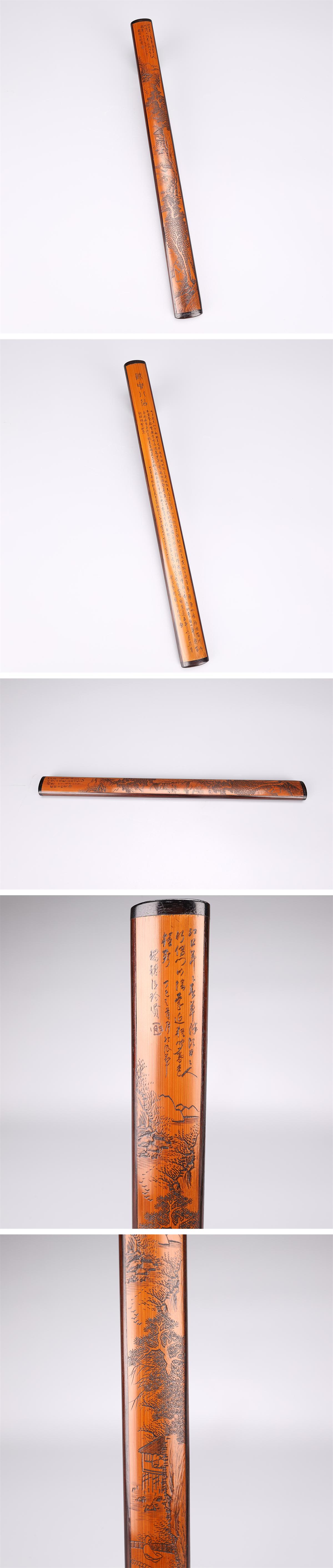 【吉】MC075 時代 【珍賢 刻】 竹製 山水漢詩文 香筒 長36㎝/共箱付の蓋無し 美品G! 收藏