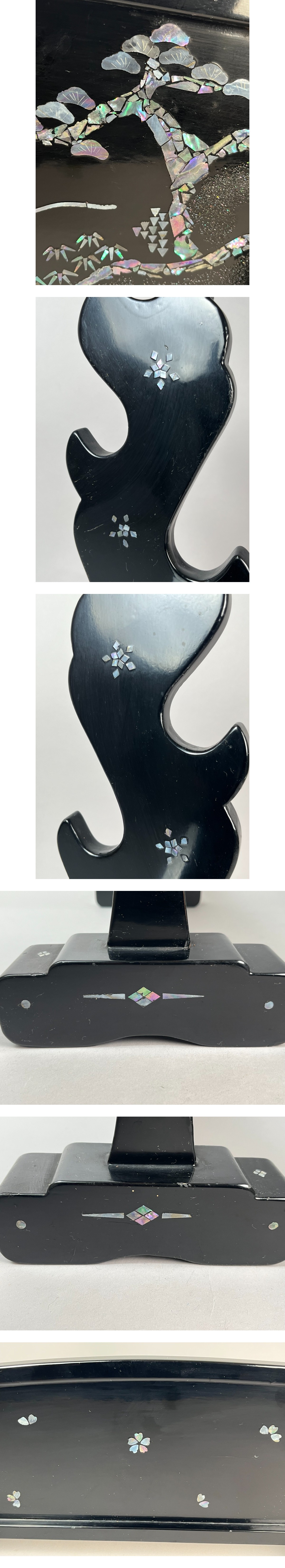 B09 螺鈿細工 山水図 人物図 刀掛け 3本用◇刀台/武具/日本刀/飾り台和風/インテリア/床の間飾/漆芸/工芸品/貝細工/伝統工芸/コレクション 收藏