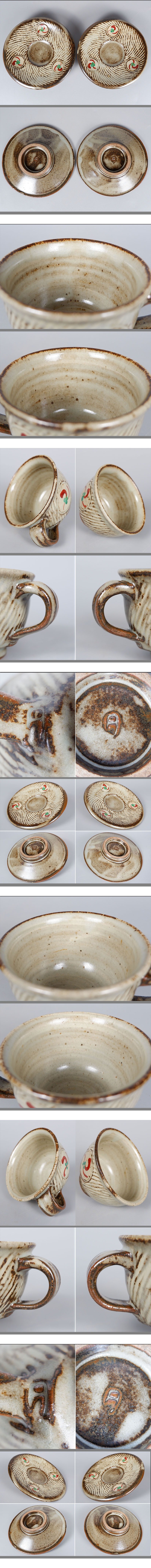 【MKA】人間国宝 島岡達三 象嵌赤絵草花文組珈琲碗皿 共箱 美品 益子 栃木 民藝巨匠 真作保証 收藏
