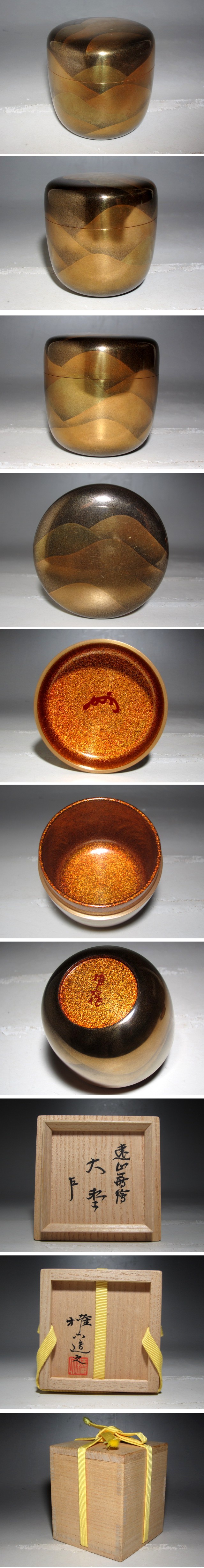 ○商品説明○ 人間国宝松田権六作の遠山蒔絵大棗です。 品格のある見事な出来栄えの大変貴重な逸品です。 蓋裏に表千家十三代即中斎の花押があります。 ○サ イ ズ○ 直径7cm/高さ8cm(多少の誤差はお許しください) ○状 態○ 無疵である事は確認しておりますが、時代のスレ等ある場合があります。 写真で良くご覧頂き気になる個所が御座いましたらご質問下さい。 ○決済方法○ かんたん決済 ○発送方法○ 佐川急便元払い 全国一律1,000円 北海道1,500円 沖縄2,000円 離島2,500円 複数点ご落札頂きましても、一点分の送料で結構です。 | ||