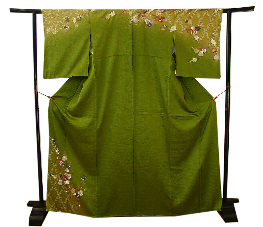 | 商品説明 | こちらのお品は「袷」でございますので、10月~5月までお召頂ければと思います。 しなやかで柔らかなぽってりとした手触りの着心地良い重めの上質な極上綸子地の生地、 抹茶色地に金茶色ぼかしの肩裾模様の染め分け地に花草、鹿の子柄の染柄に金彩加工仕立て、 八掛は抹茶色に柄入り(正絹)、幅広い年代の方にお召頂けます。 ※モデルさんの帯・小物はイメージ画像で販売は着物単品のみになります。 |