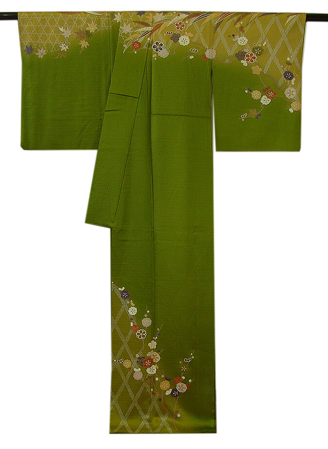 | ちょっと一言 | フォーマルシーンに美しく映える色彩美の極上倫子地に大胆な肩裾模様の染め分けが 存在感際立つ洒落感溢れる華やかな訪問着です。 どんなお客様にも好感度大の長く着られる一枚を大切に纏う醍醐味をご堪能下さいませ。 |