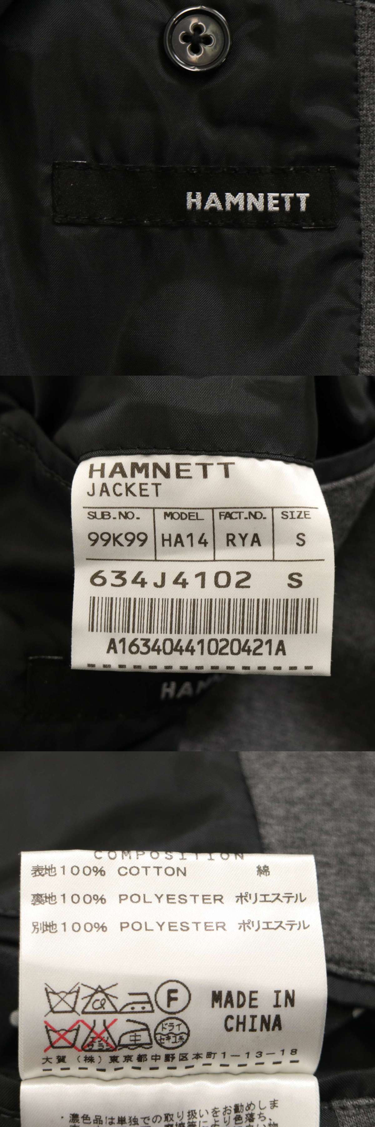 HAMNETT キャサリン ハムネット 通年 総裏★ スリム ジャージー アンコン テーラード ジャケット Sz.S メンズ グレー 收藏