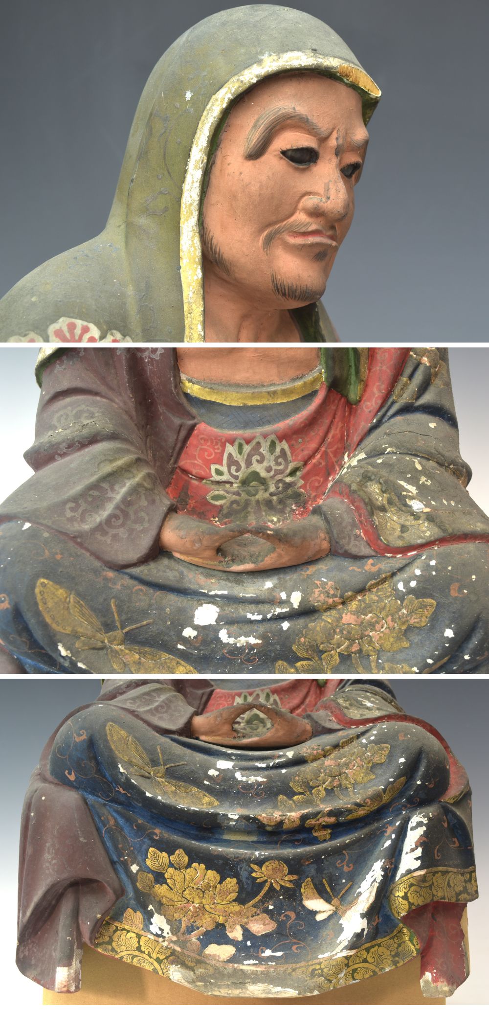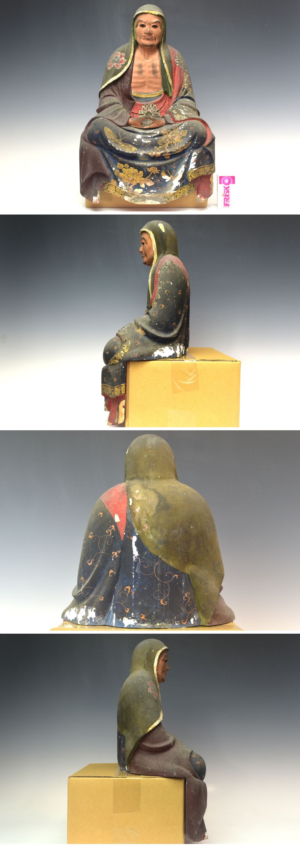 | 説明 | 時代のある木彫り彩色玉眼羅漢像です。 細部まで丁寧に彫刻、彩色が施されており時代を経た味わい深い羅漢像です。 良い表情をしており存在感があります。 経年に伴う擦り傷や汚れ、痛み等ありますので画像をご確認下さい。 今回、八体の羅漢像を同時出品しておりますので合わせて御覧下さい。(台は付属致しません) この機会をお見逃し無く! この他にも多数出品しておりますので宜しければご覧ください。 商品代金+消費税+送料の合計がお支払い代金となります。 |