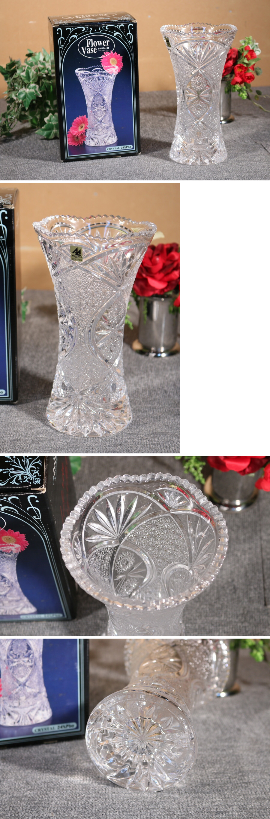 | 美品!! 石塚硝子 花瓶 クリスタル24% ソリティア 付属:画像のもの 外寸:高240×横140×奥140mm