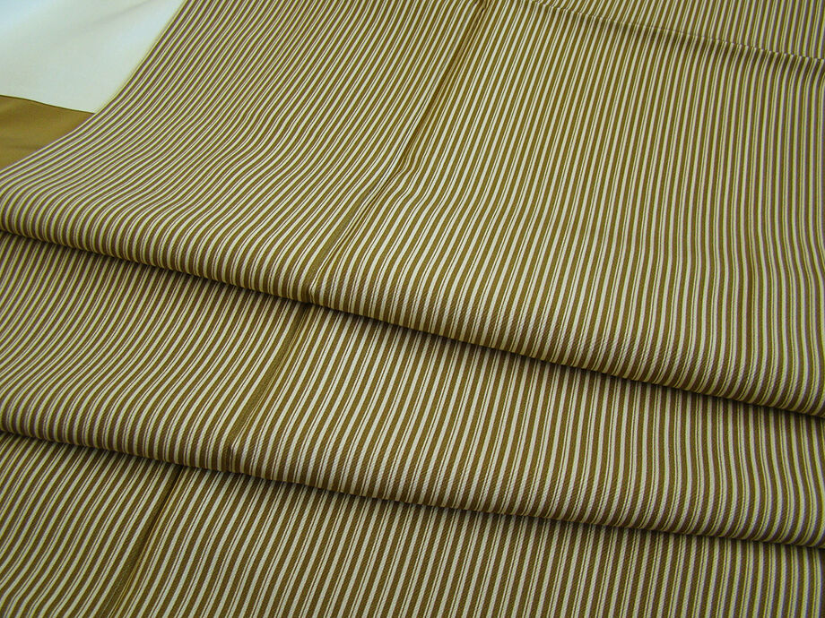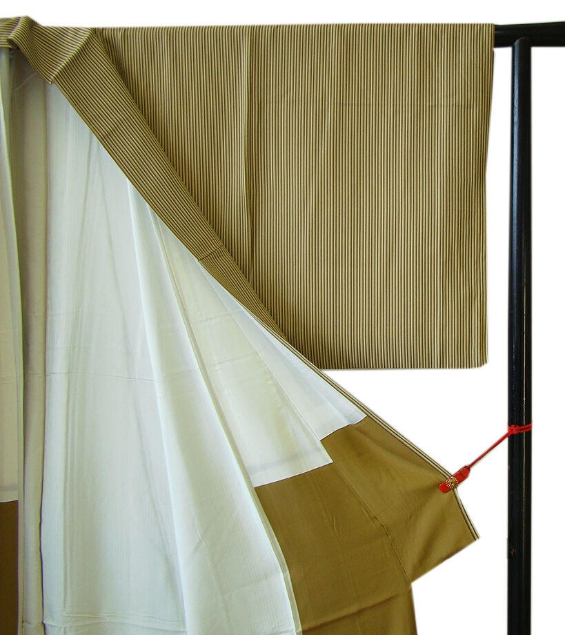 | 商品説明 | こちらのお品は「袷」ですので10月から5月までお召頂ければと思います。 とてもしなやかなさらりとした手触りの着心地良い重めの一越地の生地、 梅幸茶色と生成り色の間道柄の染柄、 八掛は共色(正絹)、幅広い年代の方にお召頂けます。 |