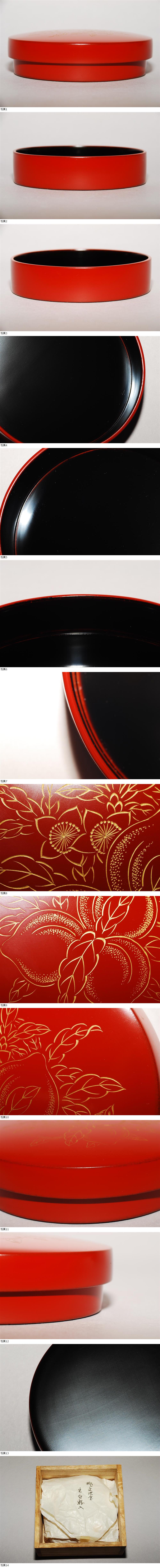 | 木製漆器 平安堂 造 己ん典 作 桃文沈金 朱 白粉入 共箱 状態:良 | ||||||||||||||