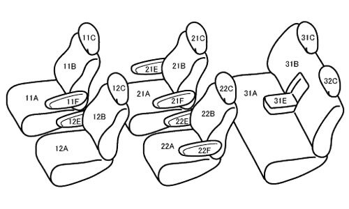 | 確認事項/注意事項 | オットマン対応(カバー設定無し) コンビニフックはカバーのバックポケットと被るため使用不可 1列目/2列目アームレスト穴あけ加工要 運転席シートリフター部穴あけ加工要 |
