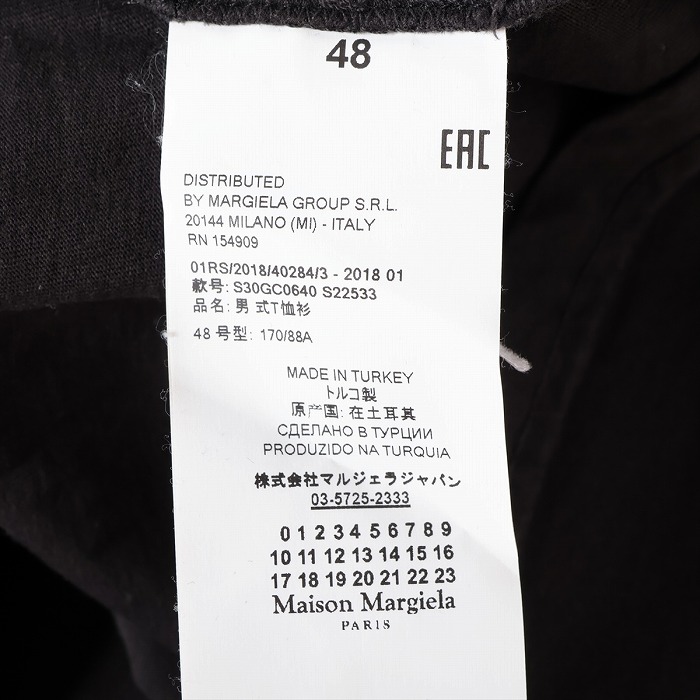 メゾン マルジェラ(Maison Margiela) コットン Tシャツ サイズ48 ブラック S30GC0640 半袖 ウェア(中古)