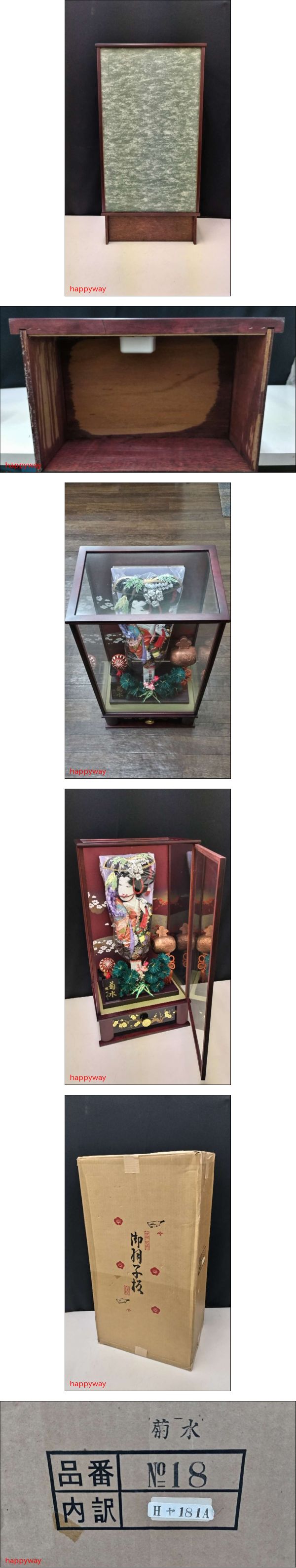 | ご覧頂き、誠にありがとうございます。 迅速・丁寧なお取引を心がけております。 出品詳細を最後まで読んでいただき、入札をご検討下さいませ。 ■商品内容 羽子板飾り お正月飾り 菊水 徳川作 伝統工芸羽子板 18号 オルゴール付き ガラスケース入り ※同梱不可です。 実家の整理品です。 長期保管品ですが目立つ大きなダメージは無い「美品」だと思います。 当方専門知識はございませんのでご了承ください。 ただし個人の感覚の誤差や見逃しがある事もありますので、ご納得うえ、ご入札をお願い致します。 完品をお求めの方や、過度に状態を気にする方は入札をお控え下さいますようお願い致します。 ※こちらの商品は同梱不可商品です。 ※専門外の商品ですので記載事項に誤りがある場合もございますが予めご了承ください。 ■商品サイズ ・ガラスケースサイズ…横38cm×奥行28cm×高さ73.5cm ※素人採寸のため若干の誤差はご容赦ください。 ■商品状態 自宅での長期保管品です。 経年保管に伴う多少の薄汚れや細かな擦れ、埃の付着などの使用感が有ると思います。 前扉はスムーズに開閉します。 オルゴールも問題なくメロディーが流れます。 画像の物が全てになります。 専門家でないためキズ・ヨゴレ・変色・擦れなど見落としがある場合があります。 ご了承ください。 写真でよく確認していただき、納得できる方のご入札をお願いいたします。 * ご注意 * ・画像に写っている物が全てとなります。 ・撮影時の照明等や、お客様のページをご覧になられる環境、(ディスプレイ設定・使用OS・携帯端末の種類) により、実際の商品の色目と多少異なって見える場合がございますので、予めご了承ください。 ・精密な検品を行っておりませんので細かな部分が気になる方はご入札をお控え下さい。 自宅保管の為完璧を求める神経質な方は入札を御遠慮下さいませ。 | ||