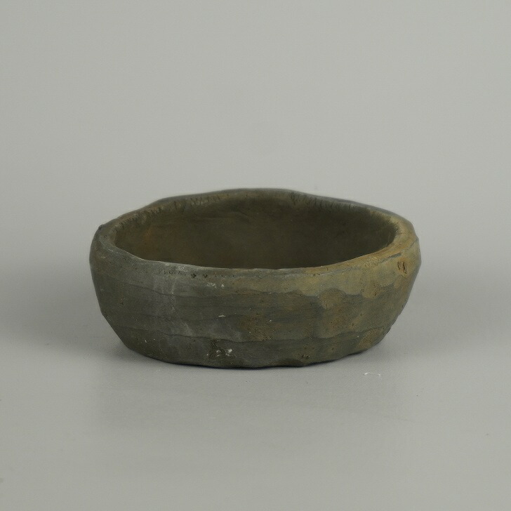 【中古】盆栽鉢 落款なし 小鉢 長辺 約 8.2cm 丸鉢 泥物 和鉢 現品 中古鉢 收藏