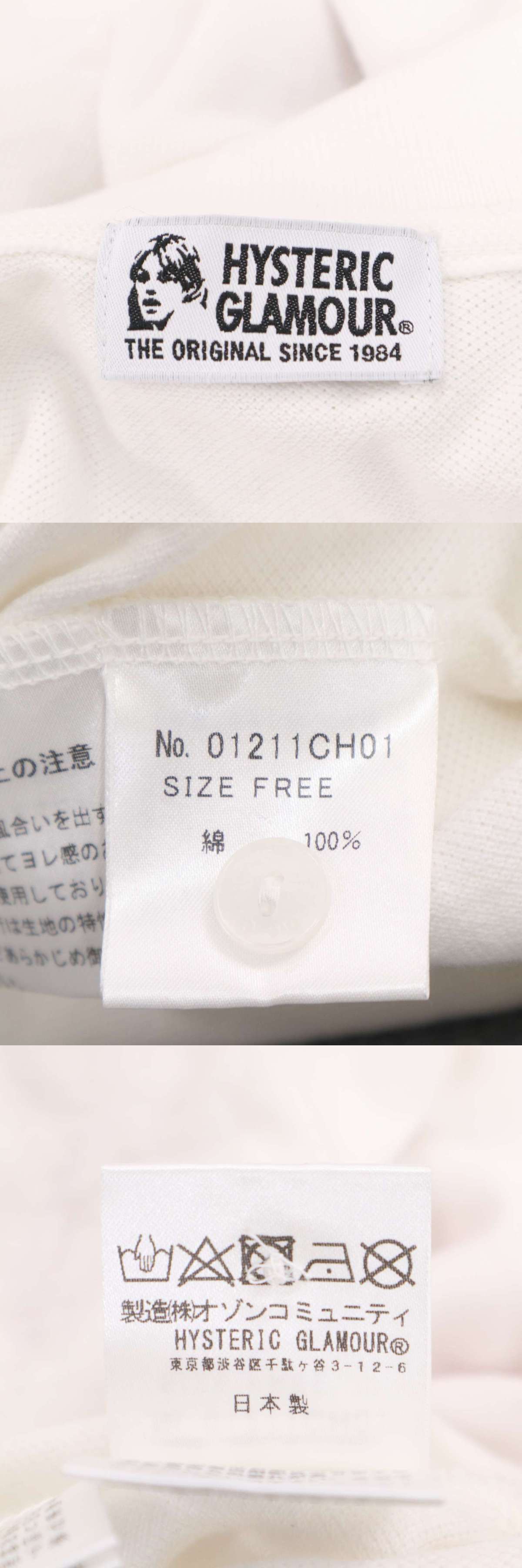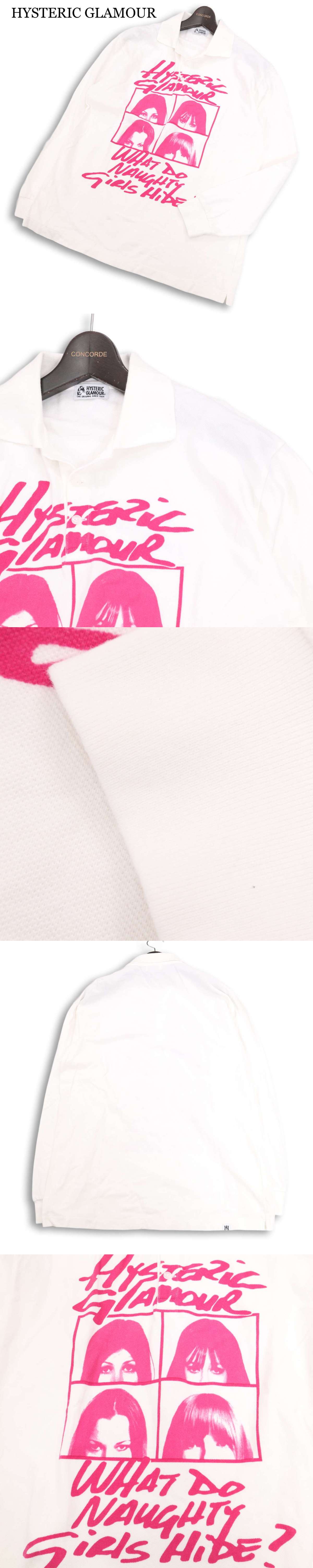 HYSTERIC GLAMOUR ヒステリックグラマー 【NAUGHTY GIRLS】ガール プリント 長袖 鹿の子 ポロシャツ Sz.FREE レディース 白 收藏