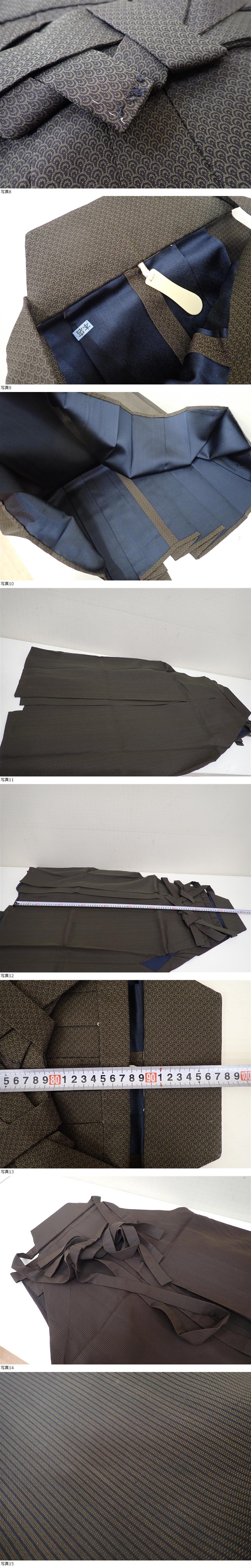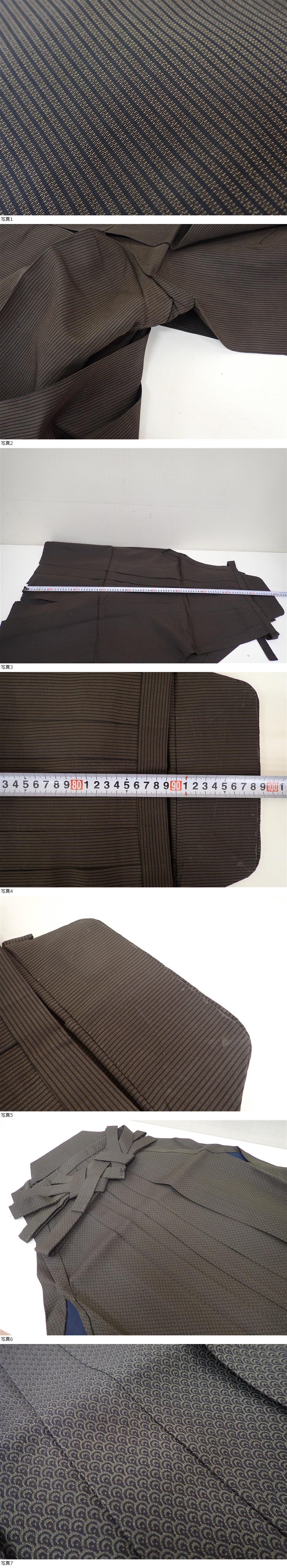 男性用袴 馬乗り袴 行燈袴 木文呉服店 正絹 縞 青海波柄 ヘラ付き有 全4点 和装 和服 コスプレ 弓道 剣道 居合 P01077 收藏
