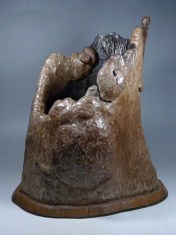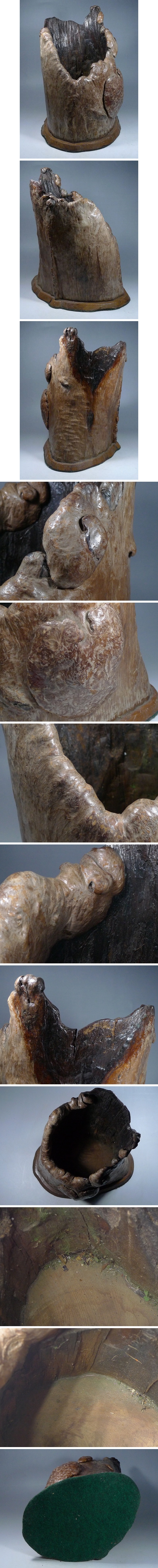 1420N04*2C▲天然木製 くりぬき鉢 刳貫火鉢切株鉢 瓶掛け 涼炉台・瘤/コブ鉢 置物 物入れ オブジェ 飾り 木工細工 收藏