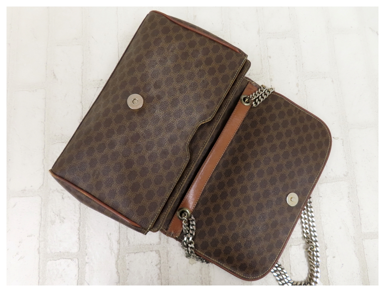 ◆美品◆CELINE セリーヌ◆マカダム◆PVC カーフ レザー 本革◆チェーン ショルダー バッグ◆ブラウン ゴールド金具◆ヴィンテージ◆A15757 收藏