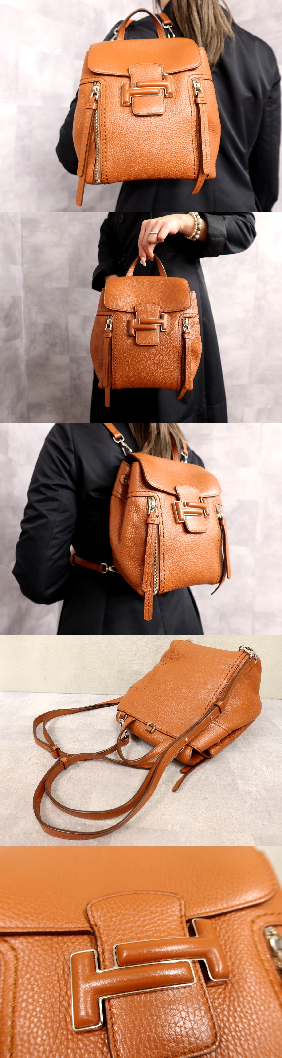 ●超美品●TODS トッズ●ダブルT●カーフ レザー 本革●リュックサック●ブラウン●シルバー金具●収納 かばん●Js65693 收藏