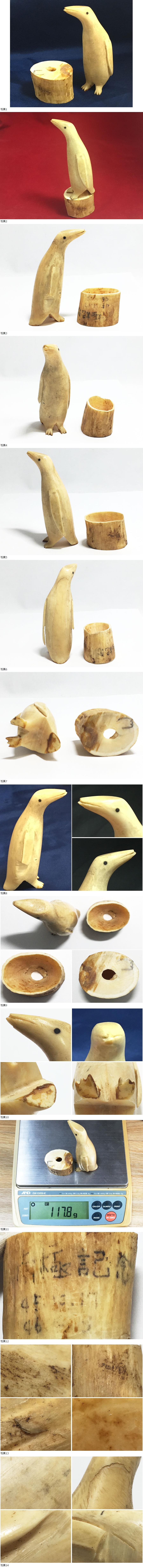 鯨歯 彫刻 ペンギン クジラ くじらの歯 牙 ヴィンテージ 天然素材 アイボリー色 オブジェ 伝統工芸 郷土細工 民芸品 総重量約117.8g 難あり 收藏