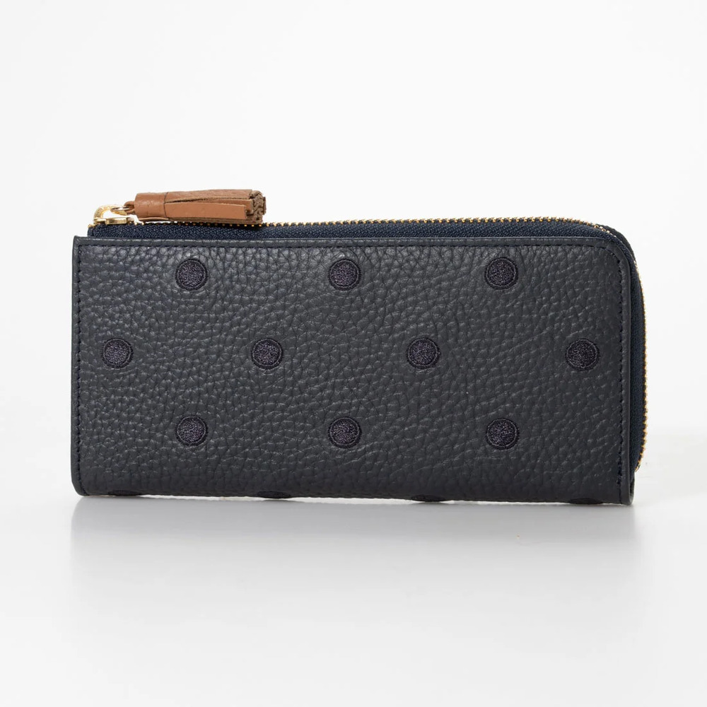 ☆ ネイビーキャメル ☆ perche ペルケ 牛革ドット刺繍 L字パームフィット ペルケ 財布 perche 08-06-02978 長財布 L字ファスナー 長サイフ 收藏