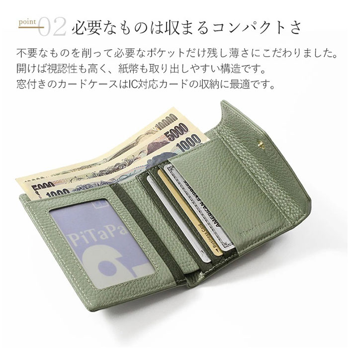 | 商品説明 | ・・【ミニマルで使いやすい】 ・装飾が少ないミニマルデザインでスマートに使える☆3つ折りお財布が発売! ・【洗練されたシンプルさ】 ・装飾がないシンプルさがポイント。無地のナチュラルカラーで洗練されたデザイン♪ ・【嬉しい本革製】 ・耐久性もある本革を採用。独特なシボ感もあり高級感ある仕上がり。 ・【大事な情報をしっかり守る】 ・スキミング防止のフィルムを挟み込み、カードに登録された個人や財産の情報をしっかり守る ・【ミニだけど機能充実】 ・カード入れはもちろん、お札入れや小銭入れも付いており、ミニサイズで機能の充実さも◎ ・【ポケットやミニバッグにIN】 ・コンパクトで薄型の作りなので、アウターなどのポケットやミニバッグに収納OK。 ・【独立型小銭入れ】 ・外側に配置された小銭入れは、独立しているので小銭のみのお会計もスマートに対応可能。 ・【身分証や学生証入れに】 ・カードポケットの1つはクリア窓仕様になっており、身分証や学生証入れに便利☆ ・【Blanc Pomme】 ・リンゴの花言葉である「最も美しい女性へ」からの由来。エレガントでスマートなアイテム。 ・(※)Blancは「白い」、Pomme は「リンゴの木」をを意味する言葉です。 ・【ポケット仕様】 ・フラップ内・・・カード入れ×6、お札入れ×1 ・背面・・・小銭入れ×1 |