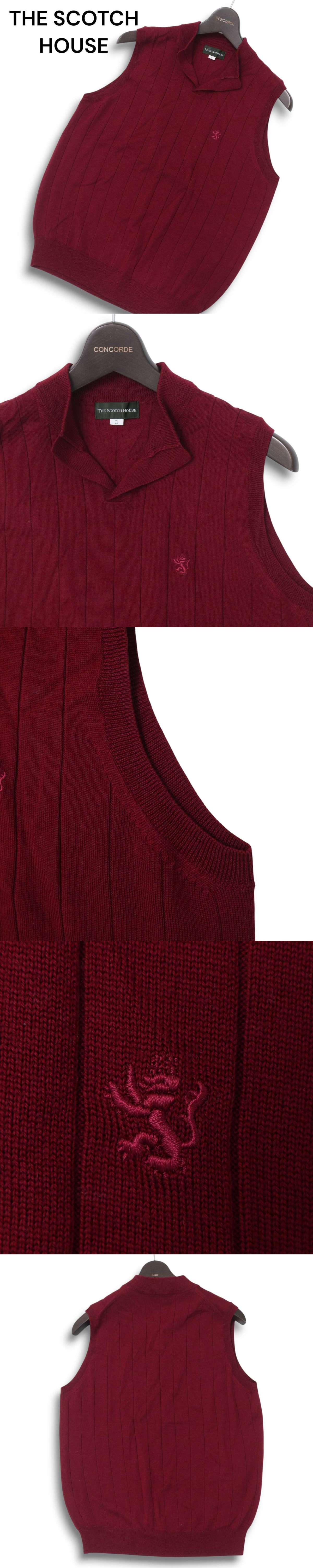 THE SCOTCH HOUSE スコッチハウス 秋冬 ロゴ刺繍 ウール100%★ ストライプ ニット ベスト Sz.L メンズ 收藏