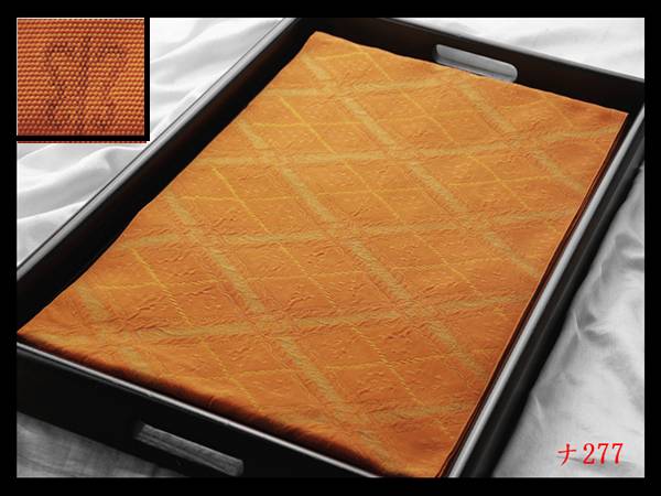 【ナ277】西陣美品 名門川島織物 本袋 菱取文様 蜜柑色地 気品豊かに 正絹六通高級美術袋帯 検★着物名古屋帯和装小物帯締め 收藏