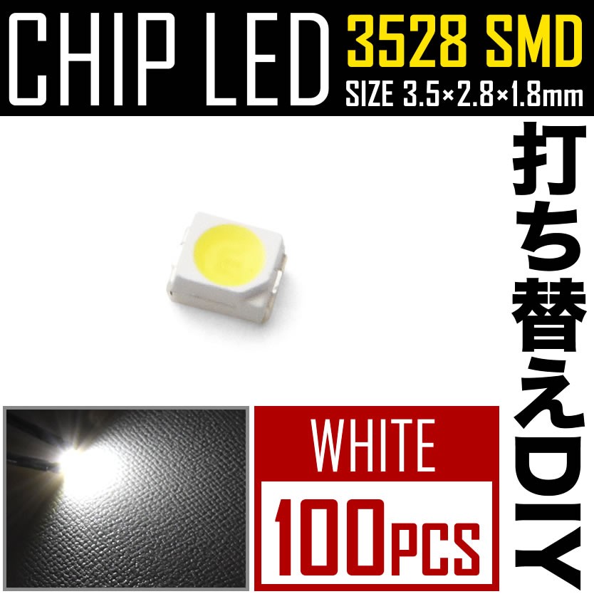 LEDチップ SMD 3528 ホワイト 白発光 100個 打ち替え 打ち換え DIY 自作 エアコンパネル メーターパネル スイッチ 收藏