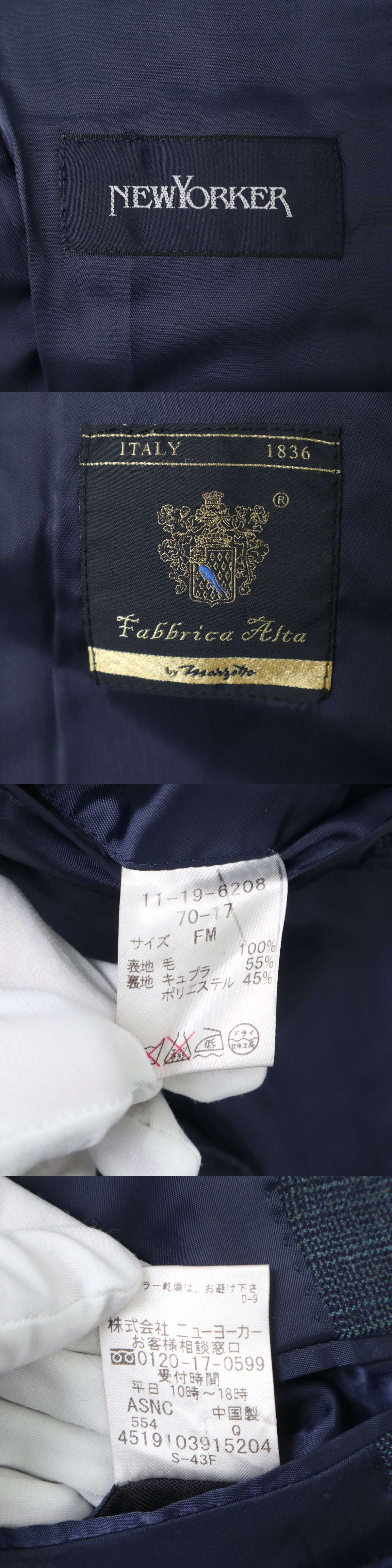 NEWYORKER ニューヨーカー 秋冬 Marzotto FABBRICA ALTA★ ウール テーラード ジャケット ブレザー Sz.FM メンズ ネイビー 收藏