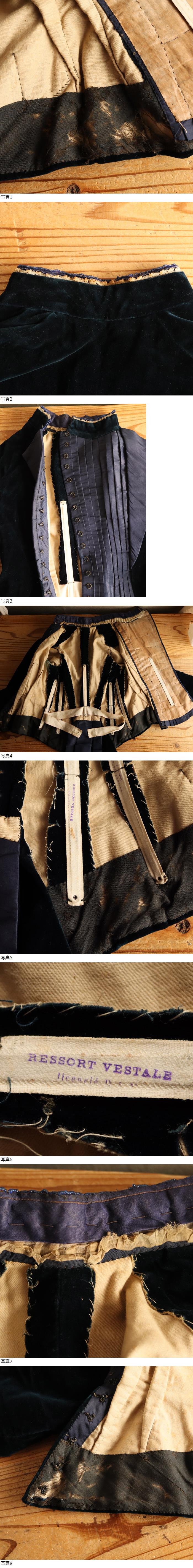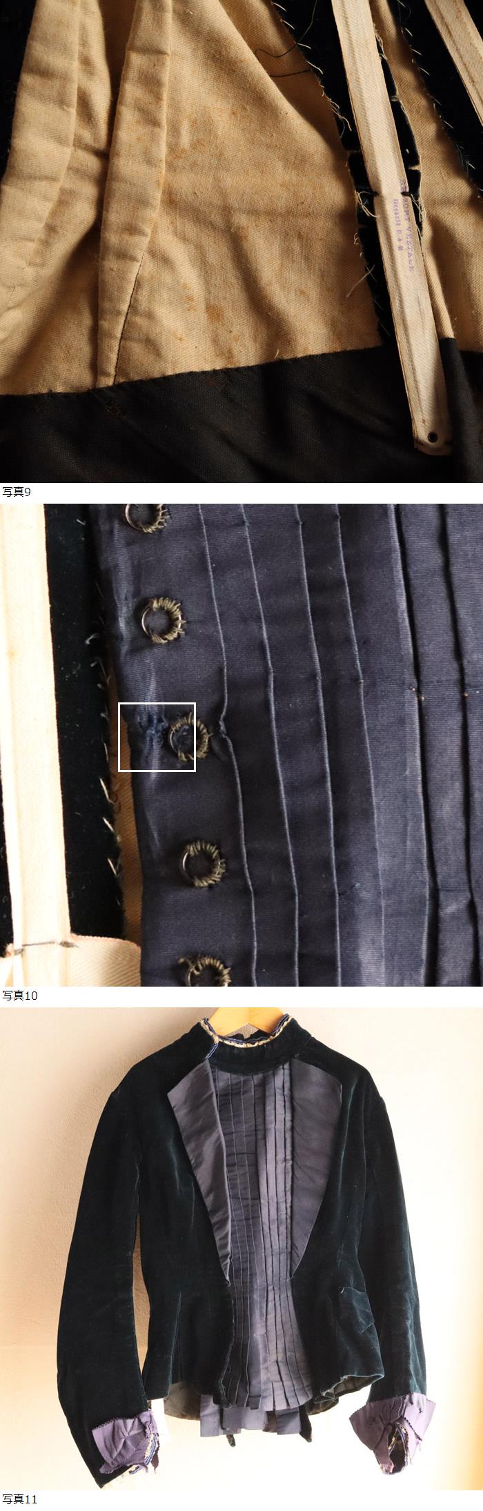 【83】フランス アンティーク ビロード ジャケット 濃紺×紫 1900年頃 ベルベット 衣装 ビーズ装飾 レース リボン ドール素材 ディスプレイ 收藏