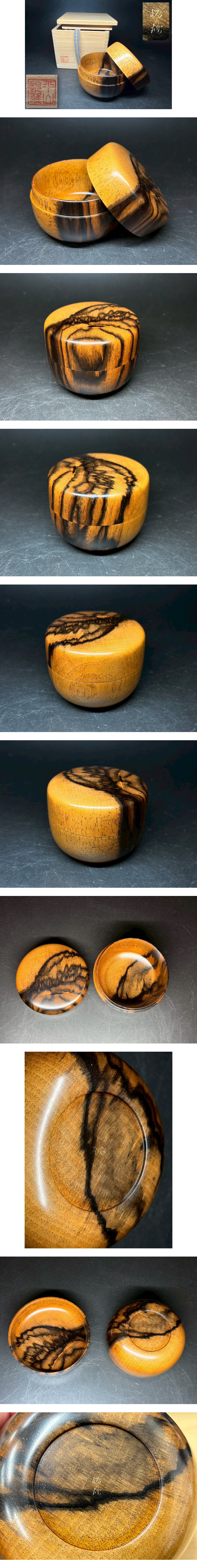 希少 銘木【黒柿】平山悦雄 作 銘 平棗 共箱 栞 茶道具 時代物 極上の孔雀杢 網杢 骨董 日本伝統工芸品 旧蔵出 初心出 コレクター放出品33 收藏