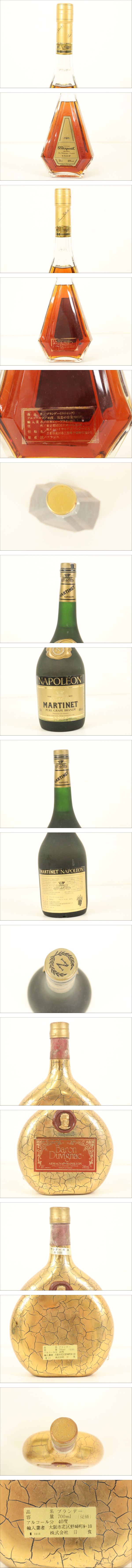 | 商品説明 | ★最後までお読みいただき、ご理解の上でのご入札をよろしくお願いいたします。 ★酒類販売業免許取得済み 【IW005】 ★洋酒 まとめ ブランデー Baron Duvignac NAPOLEON MARTINET ブランデー特級 40% 700ml アルコール 酒 お酒 古酒 ヴィンテージ 未開封_FIR_D0120-I00B 【注意事項】 20歳未満の方のご入札はご遠慮願います。 20歳未満の方の飲酒は法律で禁止されています。 【商品状態】 未開栓の為、味・品質・風味・内容量・コルクの状態等の保証はできません。 多数商品がある場合、傷や汚れを写真に載せきれない可能性もございます。 あらかじめご理解・ご了承の上入札をお願いいたします。 また、細かくクリーニングしている訳ではありませんので 過度に状態を気にされる方は入札をお控えください。 写真に写るもののみの販売となります。 映っていないものは付属いたしません。 画像をご確認の上、商品の状態に納得して頂いた方のみ入札をお願いいたします。 【取引ナビの対応日時】 ■平日9:00-18:00となります。※土日祝日は休業 【発送方法】 発送は佐川急便よりお送りいたします。 エリアによって配送業者が変わる可能性がございます。(送料は全国一律となります) 原則ご入金後、発送まで3日~7日お時間を頂いております。落札商品の量によって発送までのお時間が前後してしまう可能性があります。商品をお急ぎの方はご注意ください。 ※発送元地域が異なる商品の同梱はできません。 また土日祝日はの取引全般をお休みしておりますので発送/連絡はできません。いつ頃発送するのか等の催促はおやめください。 ※直接引き取りも可能ですが、落札後「一週間以内に引き取りに来られる方」のみとさせて頂きます。基本は平日10時~18時での対応となります。 ※沖縄・離島の方は【中継料】が発生し送料が高額になります為、佐川着払いとなります。 ※中継料が発生した場合、追加で中継料分の不足送料を請求させて頂きます。必ずご自身のお住まいをご確認頂いてから入金をお願い致します。 【直接引き取り】 引き取り場所は茨城県水戸市になります。 詳しいご案内場所は落札後、取引ナビにてご連絡いたします。 受付時間:平日10-18時 ■手順 ① 取引情報の入力 ② yahoo!かんたん決済で支払うをクリック ③ 配送方法を直接引き取り0円を選択し決済を行ってください。 ④ 取引メッセージに 直接引き取り希望と、希望日、希望時間帯をお知らせください。 後程、ご案内の通知をいたします。 【注意事項】 ■発送連絡と同時に評価も入れております。評価不要の方はご落札時にメッセージでお知らせください。 ■商品到着後、破損があった場合は配送業者へ一度ご連絡をお願い致します。 ■発送方法の変更はお受けできません、また送料に納得がいかないままの入札はご遠慮ください。 ■商品到着後7日以上経ってからの返品・返金は対応出来ません。品物が到着次第すぐに商品の状態をご確認ください。 ★他にも沢山の商品を出品しております。 ご興味のある方は、他の商品も是非ご覧下さい。