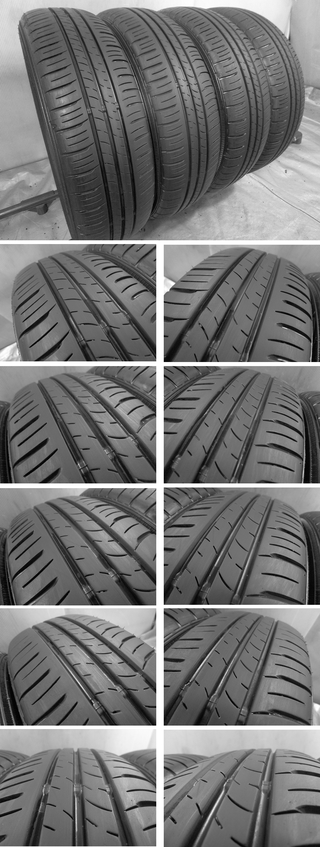 ・バリ山です。 ・1本、1ヶ所、トレッド面にパンク修理跡がございます。 当ショップは内面修理(※)をいたしております。 ※内面修理とは?※ タイヤ内面のダメージを確認して継続使用の可否など正しい判断が可能です。 パンク穴をシールすると共に内面からもパッチ貼り付けを行うので、確実な修理が可能です。 |