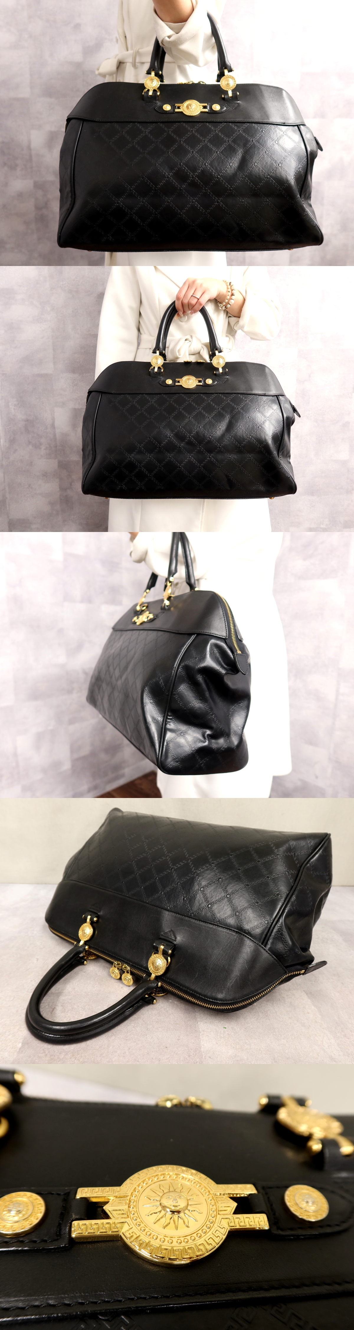 ●超美品●GIANNI VERSACE ジャンニ・ヴェルサーチ●サンバースト●太陽神●カーフ レザー 本革●ボストン バッグ●黒●G金具●Js65647 收藏