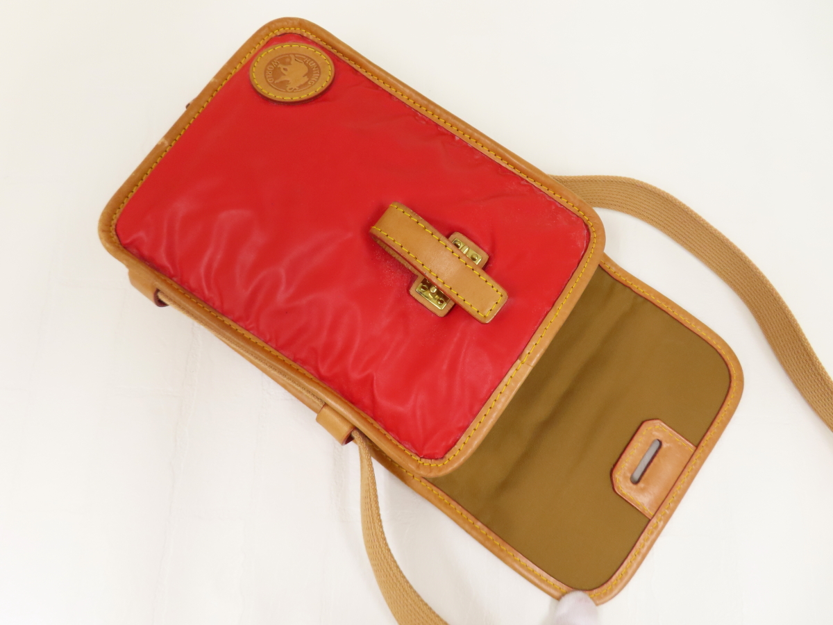◆美品◆HUNTING WORLD ハンティング・ワールド◆バチュークロス カーフ レザー 本革◆ショルダー バッグ◆赤 キャメル G金具◆A16132