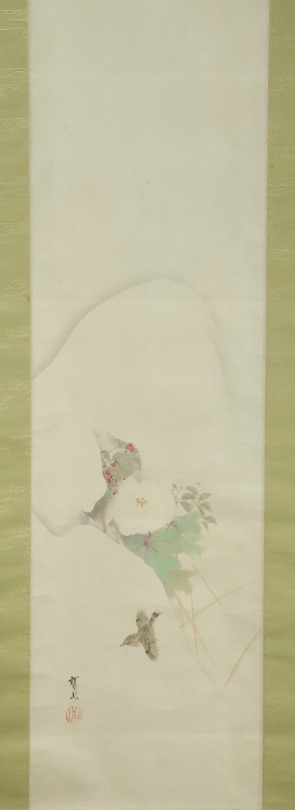 12990■【真作】木村武山 【収集家旧蔵品】 寒牡丹図 共箱 二重箱 茨城の人 川端玉章師事 円山四条派 掛軸 收藏
