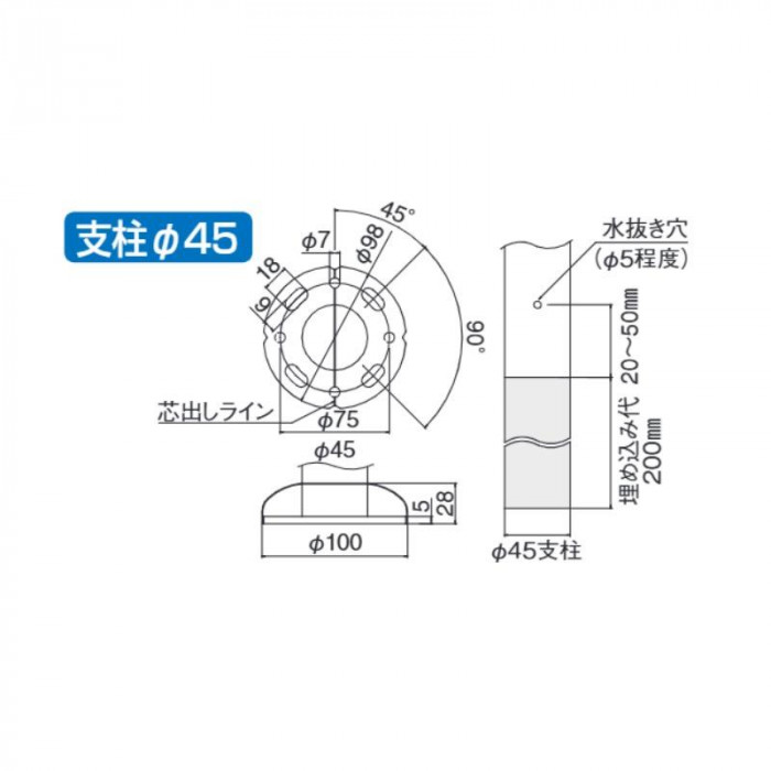 | サイズ | 支柱φ45mm 個装サイズ:11×12×85cm |