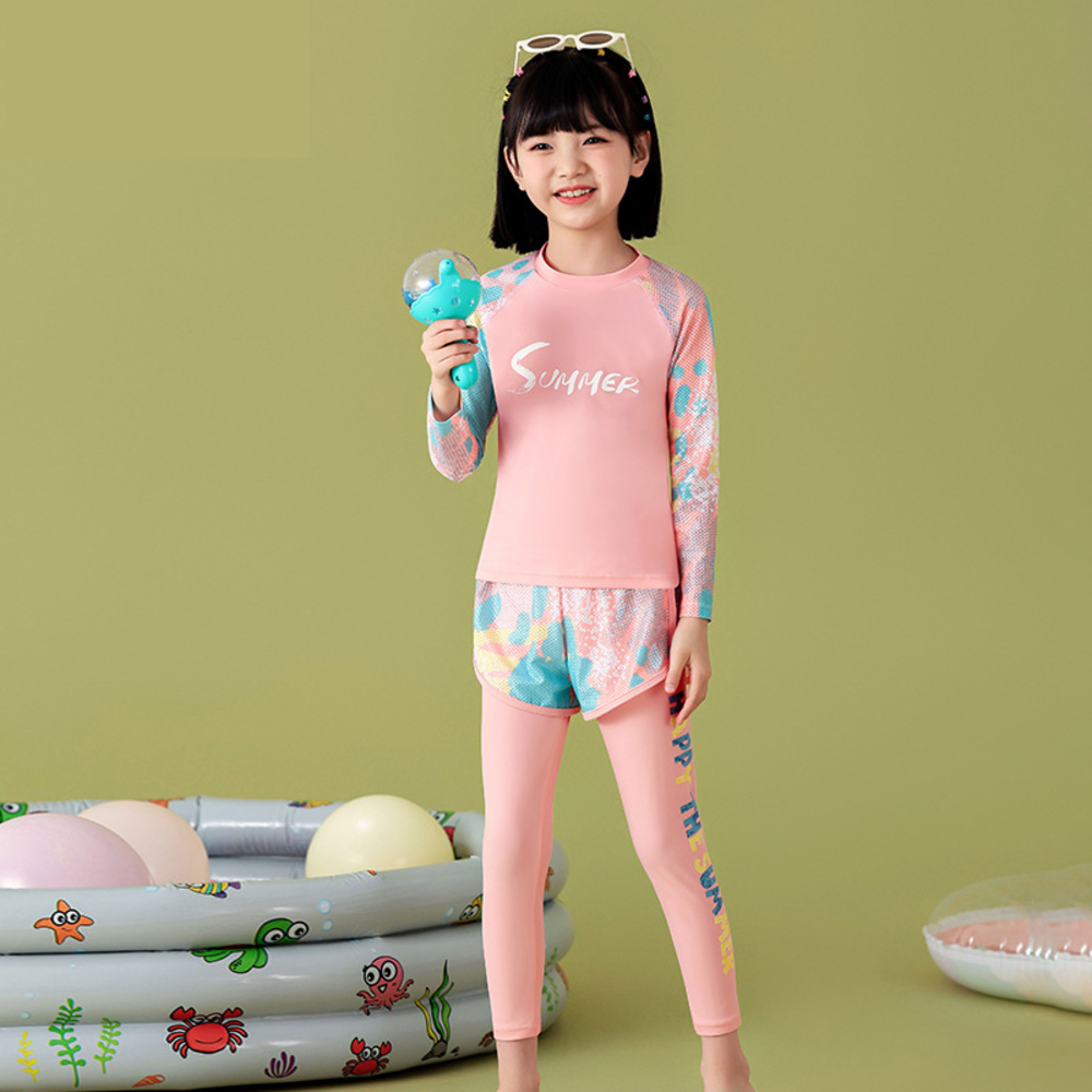 ☆ ピンク ☆ XLサイズ ☆ キッズ水着 naksw4000 子供 水着 女の子 ジュニア 長袖 ショートパンツ 半ズボン 長ズボン ラッシュガード 收藏