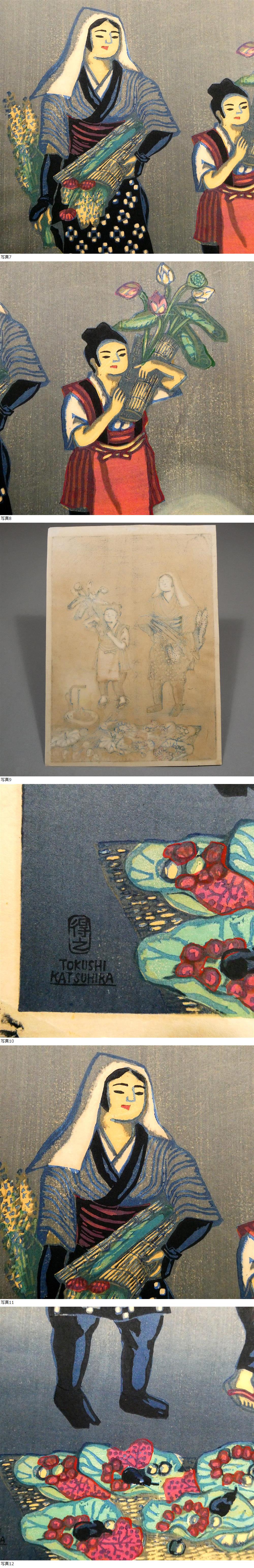 勝平得之◆創作版画 木版画作品「草市」◆昭和10年 秋田市 自画自刻自摺◆色彩豊かな東北の原風景■ブルーノ・タウト 藤田嗣治 竹久夢二 27 收藏
