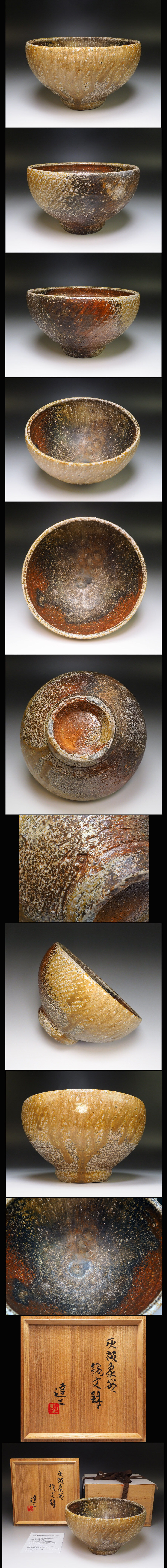 ![]() 人間国宝 島岡達三の貴重な窯変作品「灰被象嵌縄文鉢」です。 サイズ:約 径 19cm×高 11.2cm 共箱・栞つき 作品状態:窯変作品特有のヒッツキ痕はありますが、外傷キズはなく美品です。(目視確認です。) 詳細は写真で確認してください。 こちらの作品は真作保証の安心頂ける作品であることをお約束いたします。 不明な点は、入札前に質問等でご確認下さい。 島岡達三 大正8年10月27日生まれ。浜田庄司にまなび,昭和28年栃木県益子(ましこ)に窯をひらき独立。組みひもをころがした器面の押しあとに化粧土をうめる縄文象眼(ぞうがん)技法を確立し,平成8年人間国宝。平成19年12月11日死去。88歳。東京出身。東京高工(現東京工業大)卒。 | |||