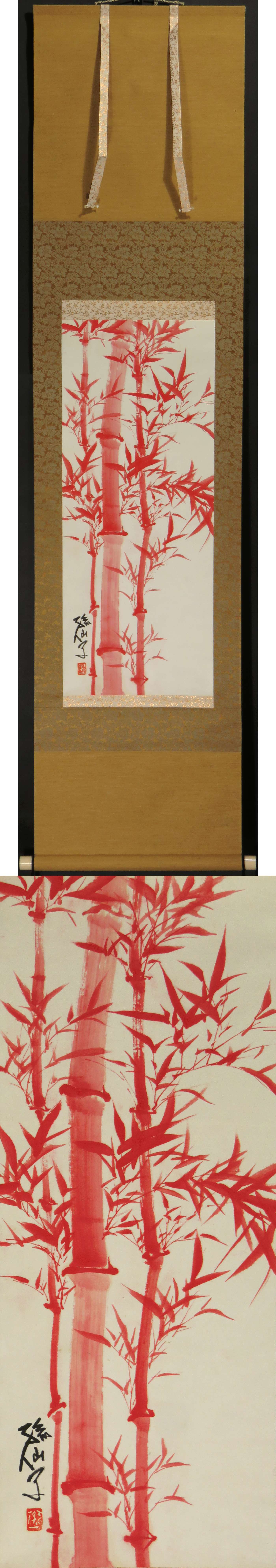 | 【模写】 掛軸 大路孫三郎 筆 「朱竹之図」 紙本 | |