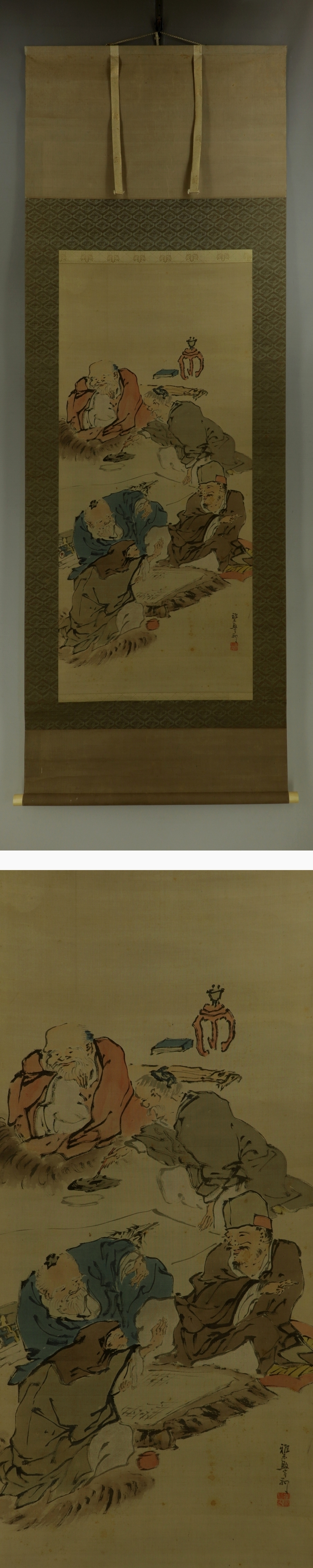 | №2401043【模写】岸駒【高士図】◆絹本◆合箱◆掛軸 | |