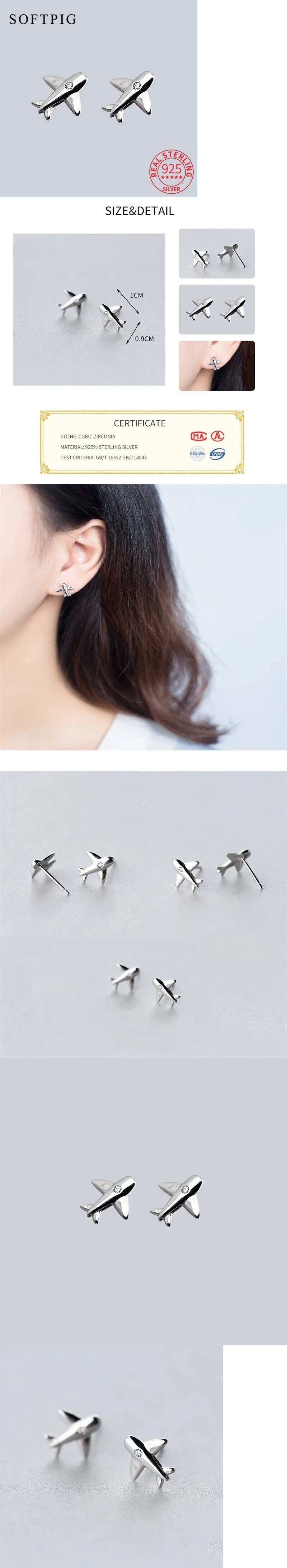 ピアス ジルコニア シルバー リング レディース 女性 チャーム リアル 925 スター 星リング 飛行機 形 シェープ 收藏
