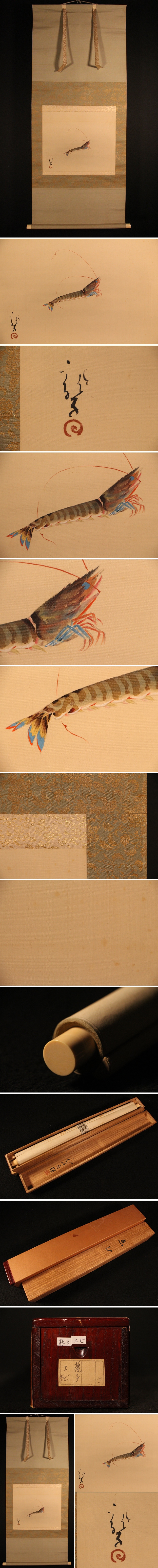 | ◇商品名◇ | 【模写】☆獅子☆日本画巨匠・川端龍子 ゑび 掛軸 絹本 共箱 二重箱 (検)えび 蝦 掛け軸 | ||