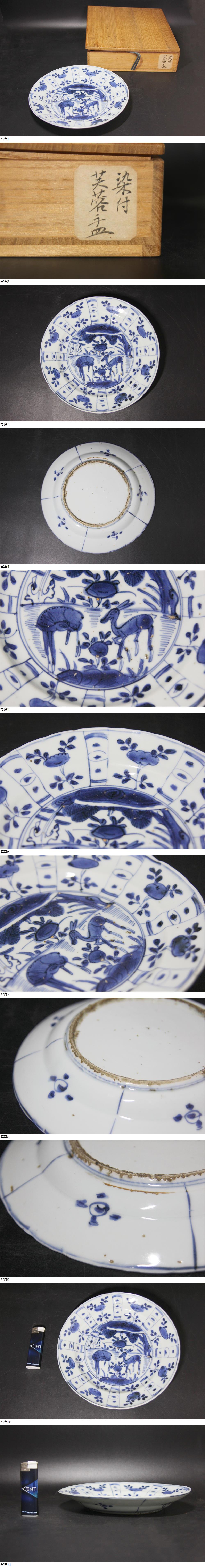 <聴雲> 皿 古染付芙蓉手鹿文皿 木箱付き 煎茶道具 中国美術 中国古玩 骨董品 古美術品 Y1-205 收藏