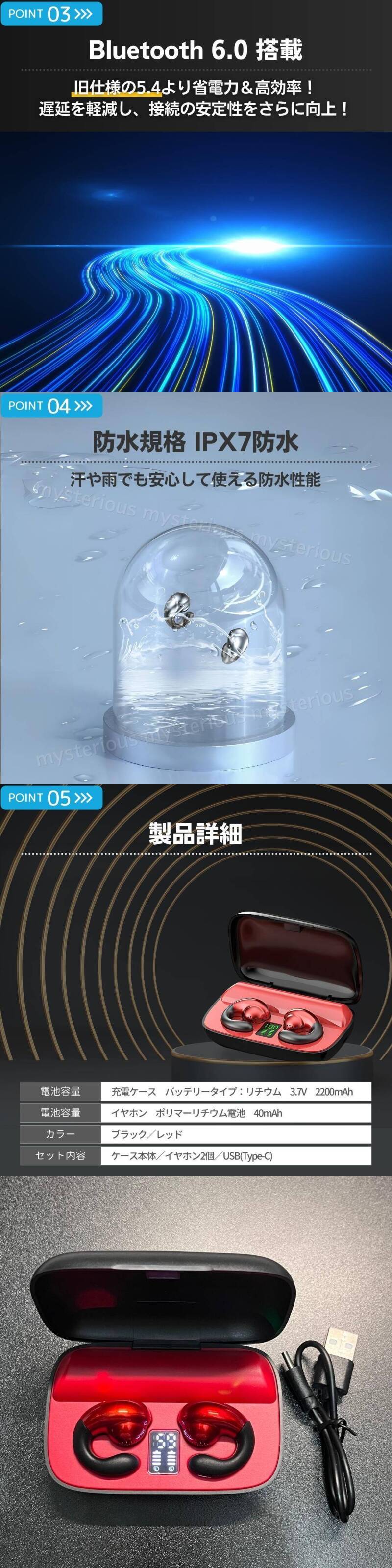 | 骨伝導技術搭載! Bluetooth 6.0 ワイヤレスイヤホン / 赤 レッド | ||||