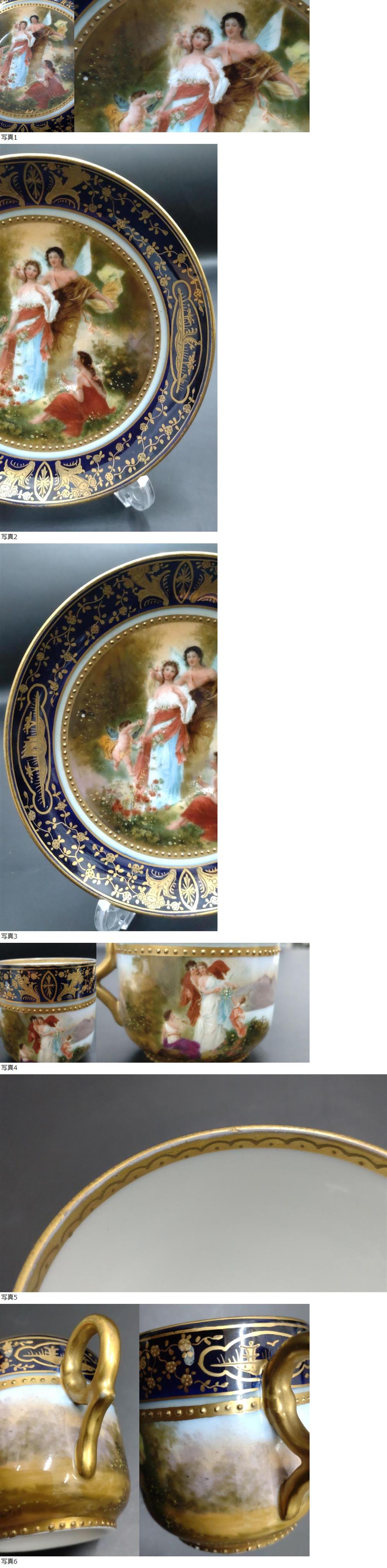 アンティーク オーストリア ウィーン窯様式 手描き 神話図 カップ&ソーサー 飾皿 リーベルサイン入り 收藏