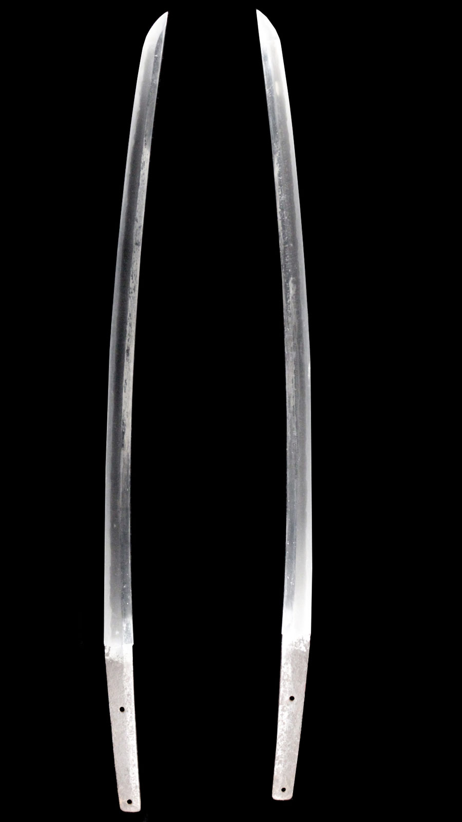 刀身長:約65.8cm 反り:約1.6cm 目くぎ穴:2個 元幅:約31.6mm 元重:約7.6mm 先幅:約21.4mm 先重:約4.5mm 刀身重:約759g 棟:庵棟 ハバキ: |