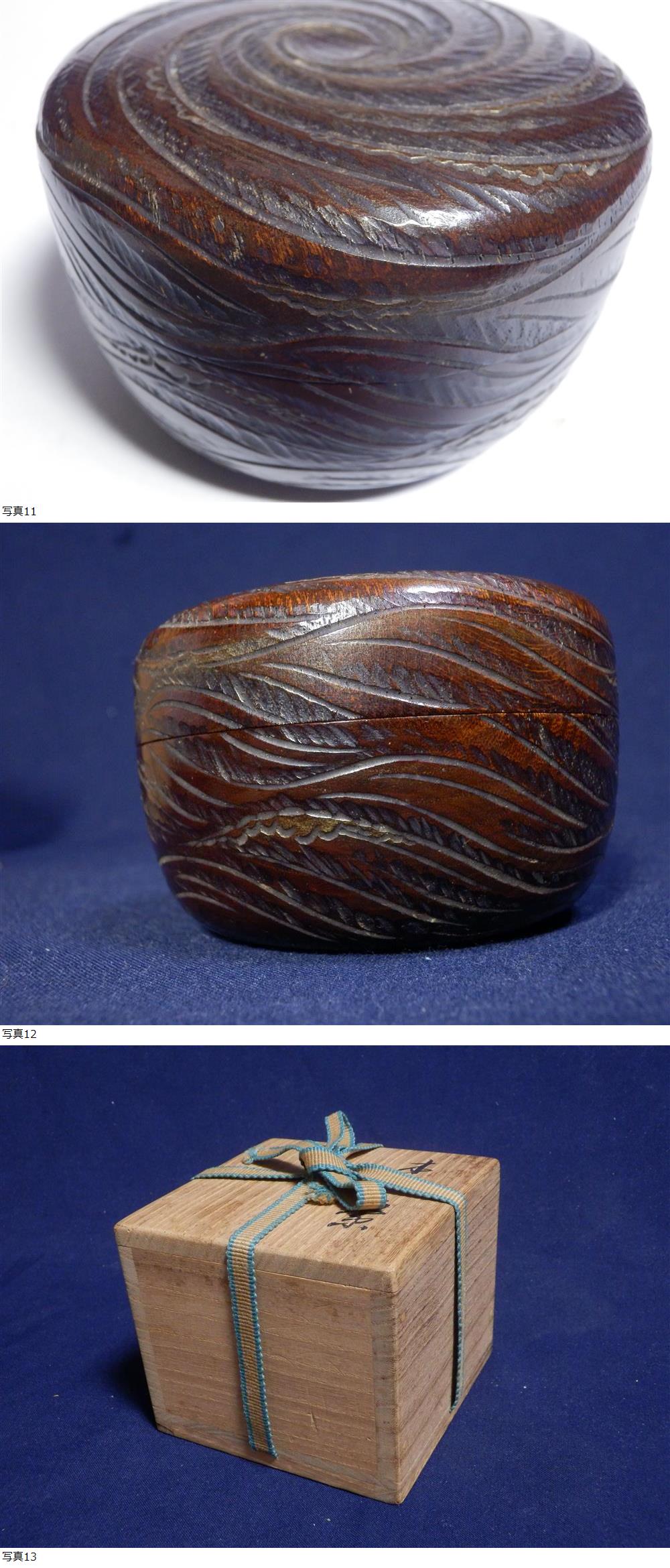 【送料無料】 珍しい 讃岐漆芸 笠居久作 木彫 渦巻 棗 (5.1x7.9cm) 共箱 (日本工芸会 伝統工芸四国展出品作家 收藏