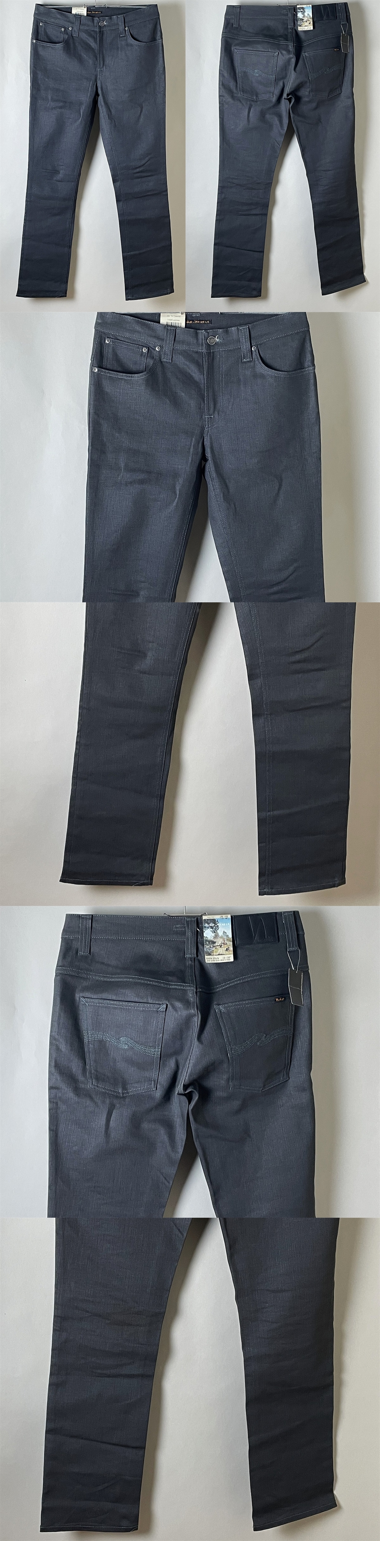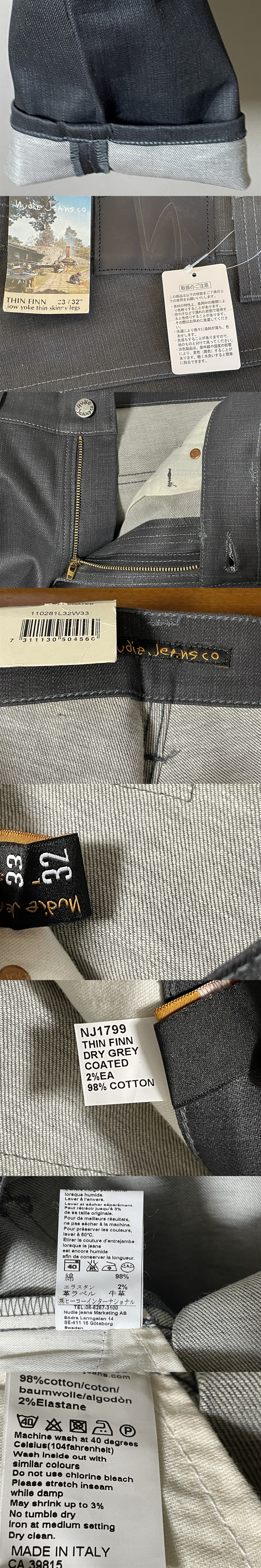 ★【新品】ヌーディージーンズ NudieJeans THIN FINN シンフィン DRY GREY COATED コーティング ストレッチ グレー デニム パンツW33 L32 收藏